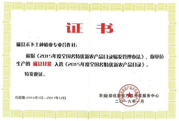 2016Äê1Ô£¬Æ¾¾Ý¡¶2015Äê¶ÈÈ«¹úÃûÌØÓÅÐÂÅ©²úƷĿ¼±à·¢ÖÎÀí²½·¥¡·£¬ÓÉ´ÅÏØ×¯ÏйÙÍøÖÖֲҵרҵÏàÖúÉçÉ걨µÄ"´ÅÏØ¸ÊÊí"¾Å©Òµ²¿ÓÅÖÊÅ©²úÆ·¿ª·¢Ð§ÀÍÖÐÐÄÆÀ¶¨£¬ÕýʽÈëÑ¡¡¶2015Äê¶ÈÈ«¹úÃûÌØÓÅÐÂÅ©²úƷĿ¼¡£´ÅÏØÎ»ÓÚºÓ±±Ê¡¸üÄ϶ˣ¬ÄÏÁÚÕĺӹŵÀ£¬Î÷´̫ÐÐɽÂö£¬Æ½Ô¡¢ÇðÇø¡¢É½ÇøÃæ»ý¸÷Õ¼Èý·ÖÖ®Ò»£¬ÍÁµØ×ÊÔ´Ê®·Ö¸»ºñ¡£ÓµÓÐÓÆ¾ÃµÄ¸ÊÊíÖÖÖ²¹Å°åºÍÀúÊ·¡£ÔÚ½â·Å³õÆÚ£¬¸ÊÊí×÷Ϊµ±ÌïÖ÷ÒªÁ¸Ê³×÷ÎÊǽâ¾öÈËÃÇα¥µÄÖ÷Òª°ü¹Ü¡£ÒÔ¸ÊÊíΪÔÁϵķÛÌõ¡¢·ÛƤ¡¢µí·ÛµÈ³õ¼¶¼Ó¹¤²úÆ·´ó´ó¸»ºñÁ˵ط½¼°Öܱ߾ÓÃñµÄÒûʳ½á¹¹£¬²¢´´Á¢³öÐí¶à¹Å°åµÄ¸ÊÊíÖÆÆ·ÊÖ¹¤¼Ó¹¤¹¤ÒÕ¡£½üÄêÀ´£¬´ÅÏØ×¯ÏйÙÍøÖÖֲҵרҵÏàÖúÉçÒÀÍÐׯÏйÙÍøÔÚÍѶ¾¸ÊÊí¿ÆÑС¢ÓýÖÖ¡¢ÓýÃ繤ҵÓÅÊÆ£¬»ý¼«Éú³¤ÍѶ¾¸ÊÊí¹¤Òµ£¬ÔÚ´ÅÏØÖÐÎ÷²¿É½ÇðÇøÉú³¤ÍѶ¾¸ÊÊíÖÖÖ²Ãæ»ý10000ÓàĶ£¬...