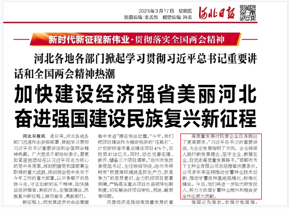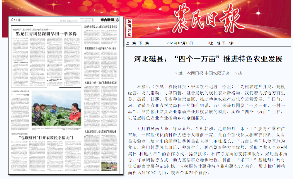2023Äê7ÔÂ18ÈÕ£¬¡¶Å©ÃñÈÕ±¨¡·¿¯µÇ¡°ºÓ±±´ÅÏØ£º¡®ËĸöÒ»ÍòĶ¡¯ÍƽøÌØÉ«Å©ÒµÉú³¤¡±£¬¹Ø×¢´ÅÏØÍѶ¾¸ÊÊíµÈ4´óÌØÉ«Å©Òµ¹¤Òµ¸ßÖÊÁ¿Éú³¤¡£
