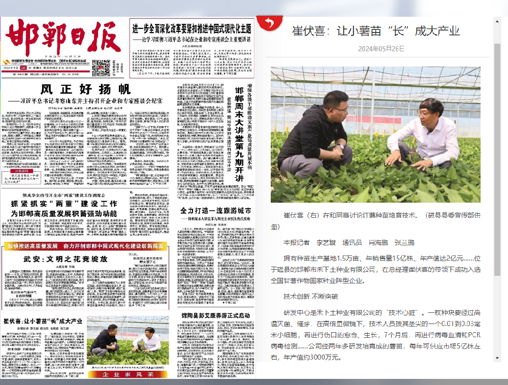 2024Äê5ÔÂ26ÈÕ£¬ºªµ¦ÈÕ±¨Í·°æ¿¯µÇ¡°´Þ·üϲ£ºÈÃСÊíÃç¡®³¤¡¯³É´ó¹¤Òµ¡±£¬¾Û½¹´ÅÏØÍѶ¾¸ÊÊíÌØÉ«Å©Òµ¹¤Òµ£¬Ïêϸ½éÉÜÁËׯÏйÙÍøÔÚÍѶ¾×éÅà¡¢¿ÆÑÐÁ¢Òì¡¢¹æÄ£»¯Éú³¤¡¢Æ·Åƽ¨ÉèµÈ·½ÃæÈ¡µÃµÄ½á¹û¡£ÕâÒ»±¨µÀ²»µ«ÕÃÏÔ´ÅÏØÍѶ¾¸ÊÊí¹¤ÒµµÄÅÉú³¤£¬»¹Õ¹ÏÖÁË´ÅÏØÆóÒµ¼ÒµÄ¾«ÉñÃæÃ²Óë·ç·¶¡£